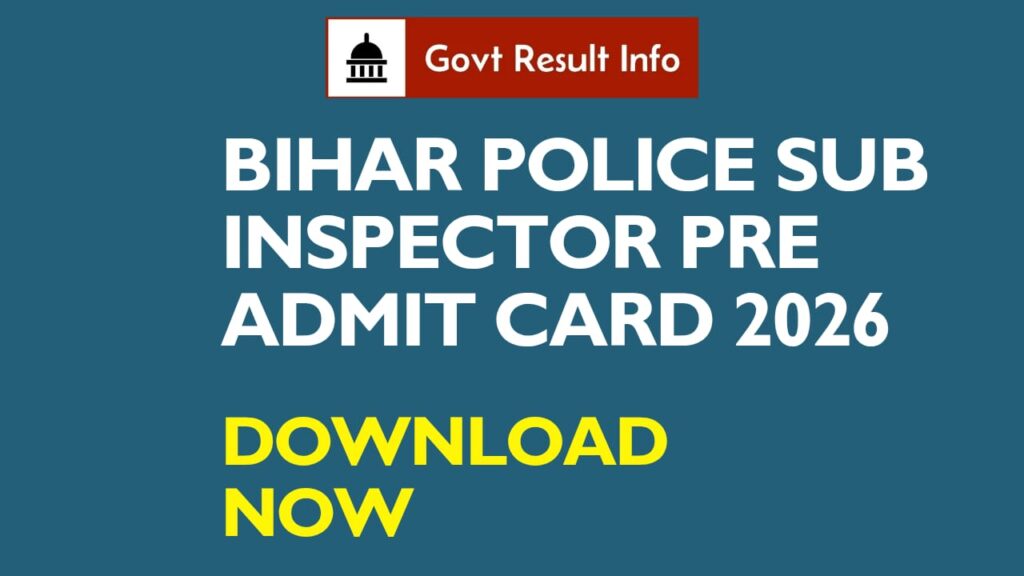 Bihar Police Subordinate Services Commission (BPSSC) Has Relesed the Admit Card For Bihar Police Sub-Inspector (SI) Pre Post. Candidates can download their Admit Card Starting From 30 December 2025. As Per the Latest Schedule, the Bihar Police Sub-Inspector (SI) Pre Exam 2025 will begin on 18/01/2026 to 21/01/2026 Candidates can check their Exam City details and download their Admit Card by logging into the portal using their Enrollment Number, Registration ID, or Date of Birth.