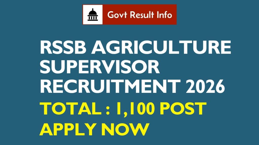 | Rajasthan Staff Selection Board (RSSB) RSSB Agriculture Supervisor Recruitment 2026 – Apply Online GovtResultInfo.com | |||||