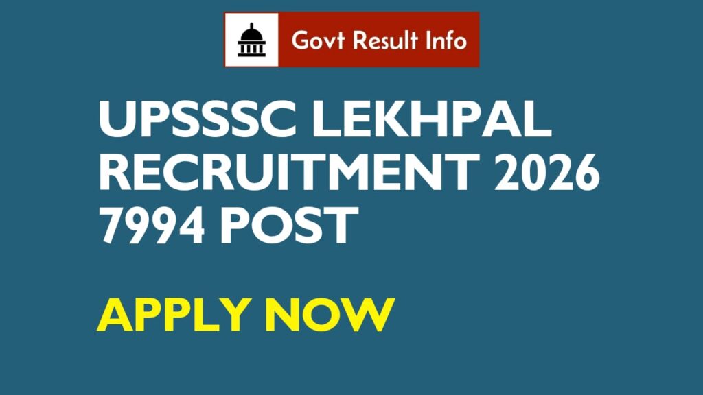 Uttar Pradesh Subordinate Services Selection Commission (UPSSSC) has officially released a notification For Lekhpal Recruitment 2026. Total Vacany For this Post is 7994 The online application process for the UPSSSC Lekhpal Recruitment 2026 has commenced from 29/12/2025, and the last date is 28/01/2026 . This recruitment drive is one of the most awaited announcements for young aspirants seeking secure government employment in the Revenue Department of Uttar Pradesh, Intrested Condidate Can Apply Online For This Post.